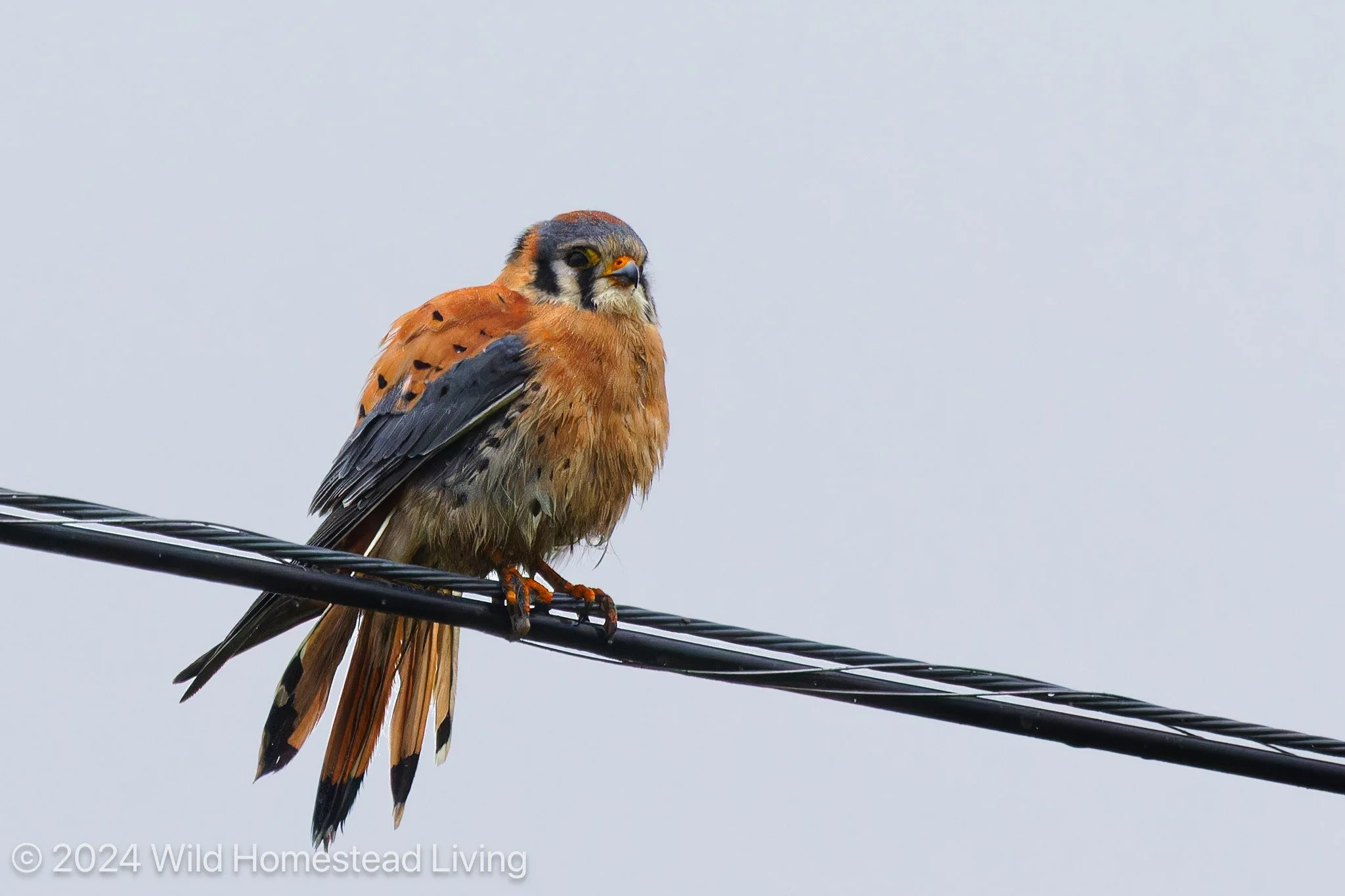 The female American Kestrel was sitting on an upper set of wires. She was about 25% larger than the male and a bit less colorful as the following photos will attest.